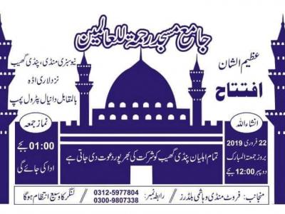 افتتاح مسجد رحمتہ للعالمین، نیو سبزی منڈی، لاری اڈہ، بالمقابل دانیال پٹرول پمپ، پنڈی گھیب