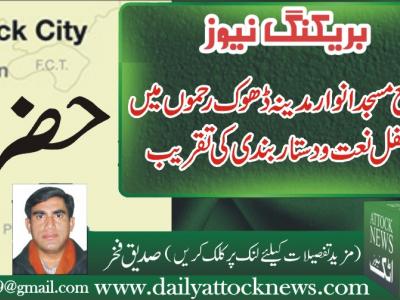 جامع مسجد انوار مدینہ ڈھوک رحموں میں محفل نعت و دستار بندی کی تقریب