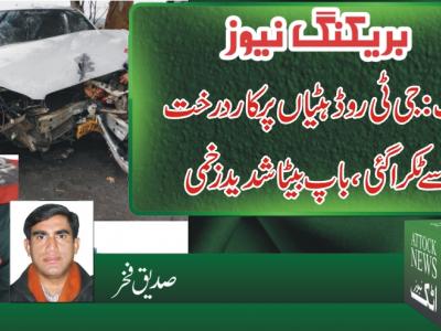 اٹک:جی ٹی روڈ ہٹیاں پر کار درخت سے ٹکرا گئی، باپ بیٹا شدید زخمی
