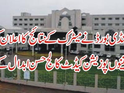 راولپنڈی بورڈ میٹرک امتحانات میں پہلی تینوں پوزیشنز کیڈٹ کالج حسن ابدال کے نام